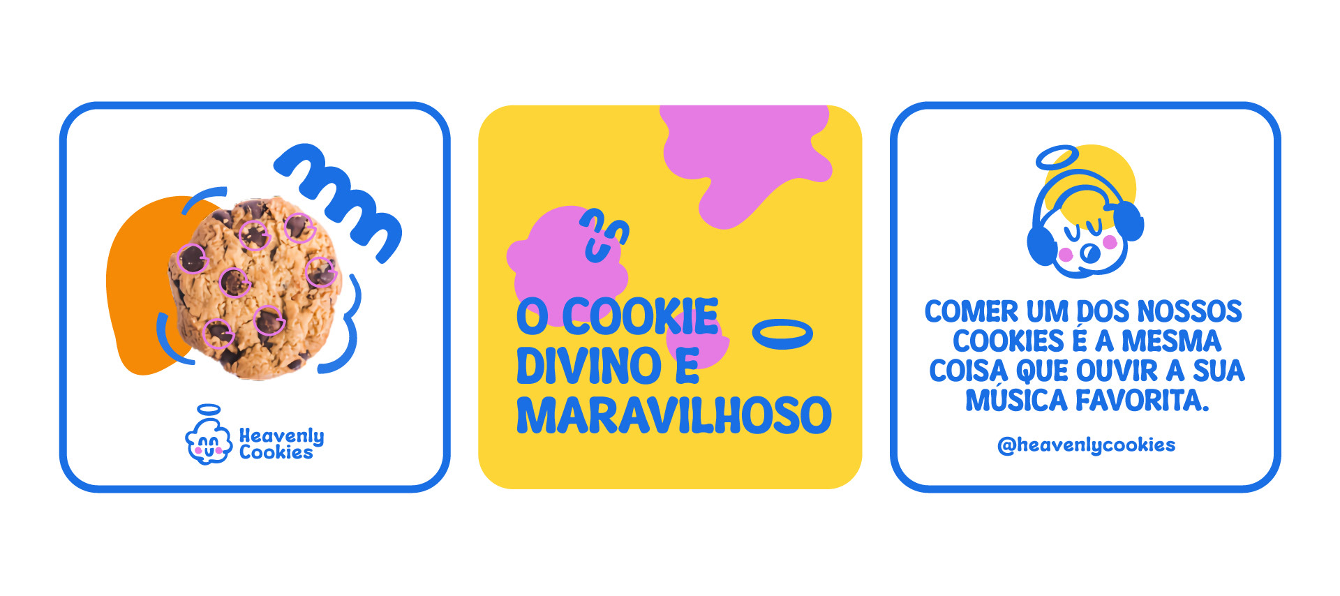 [EN] Heavenly Cookies arrives on the market to bring delicious cookies with a touch of divine.With a proposal to offer something heavenly through flavors and experiences, the brand positions itself as fun, friendly and sensorial.Thus, the creation of the visual identity took a strategic direction to highlight a happy and heavenly brand.